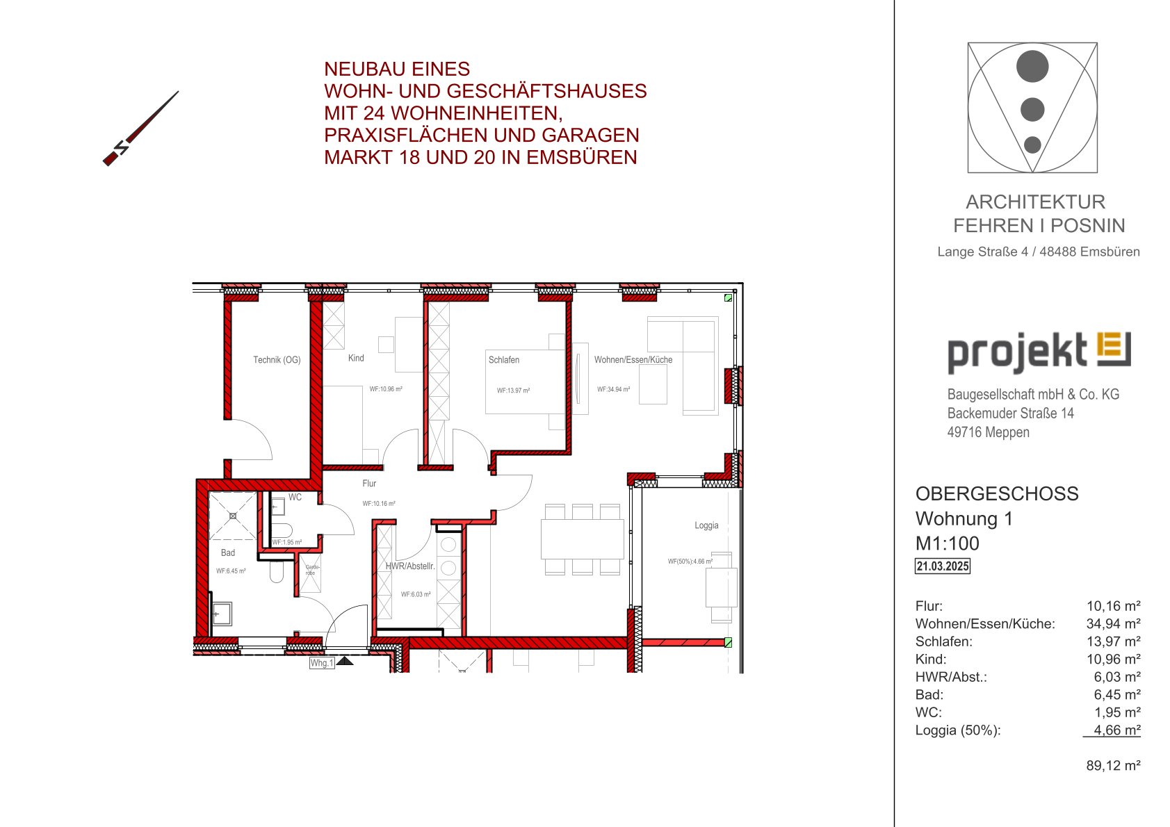 Die hier angebotene Wohnung Nr. 1 liegt im 1. Obergeschoss des Gebäudes. Sie hat eine Größe von 89,12 m².